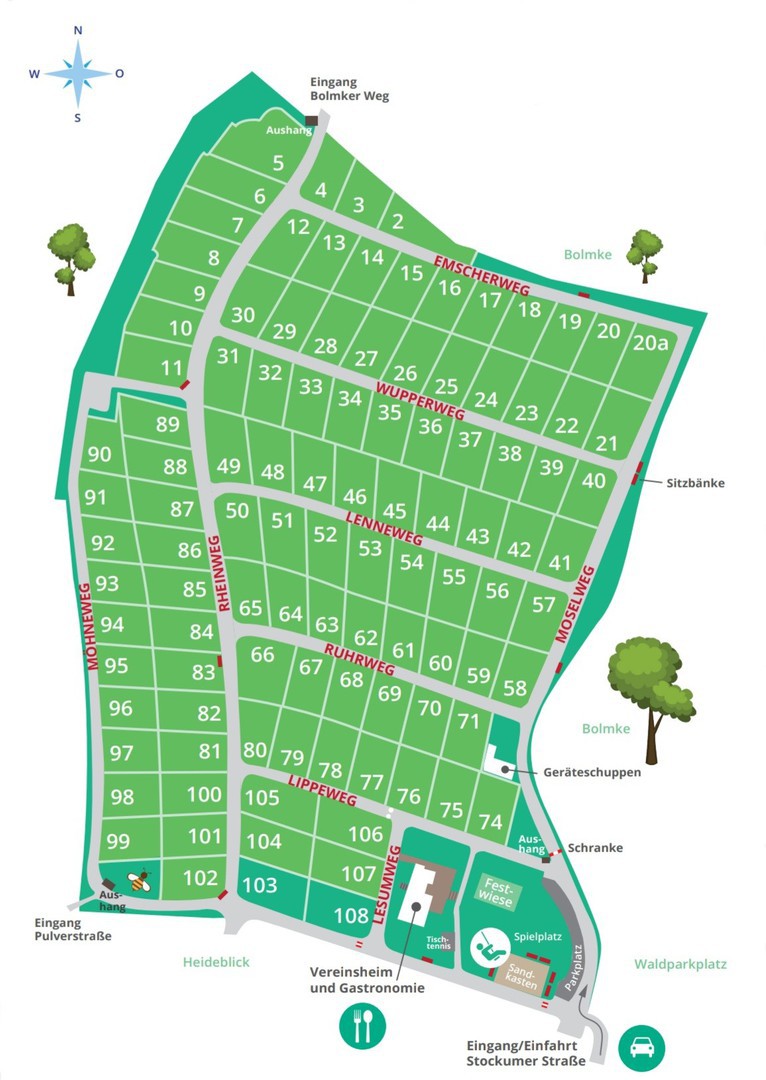 Herzlich Willkommen Wir sind ein Kleingartenverein im Dortmunder Süden mit 106 Gärten in der ruhigen Waldgegend der Bolmke.